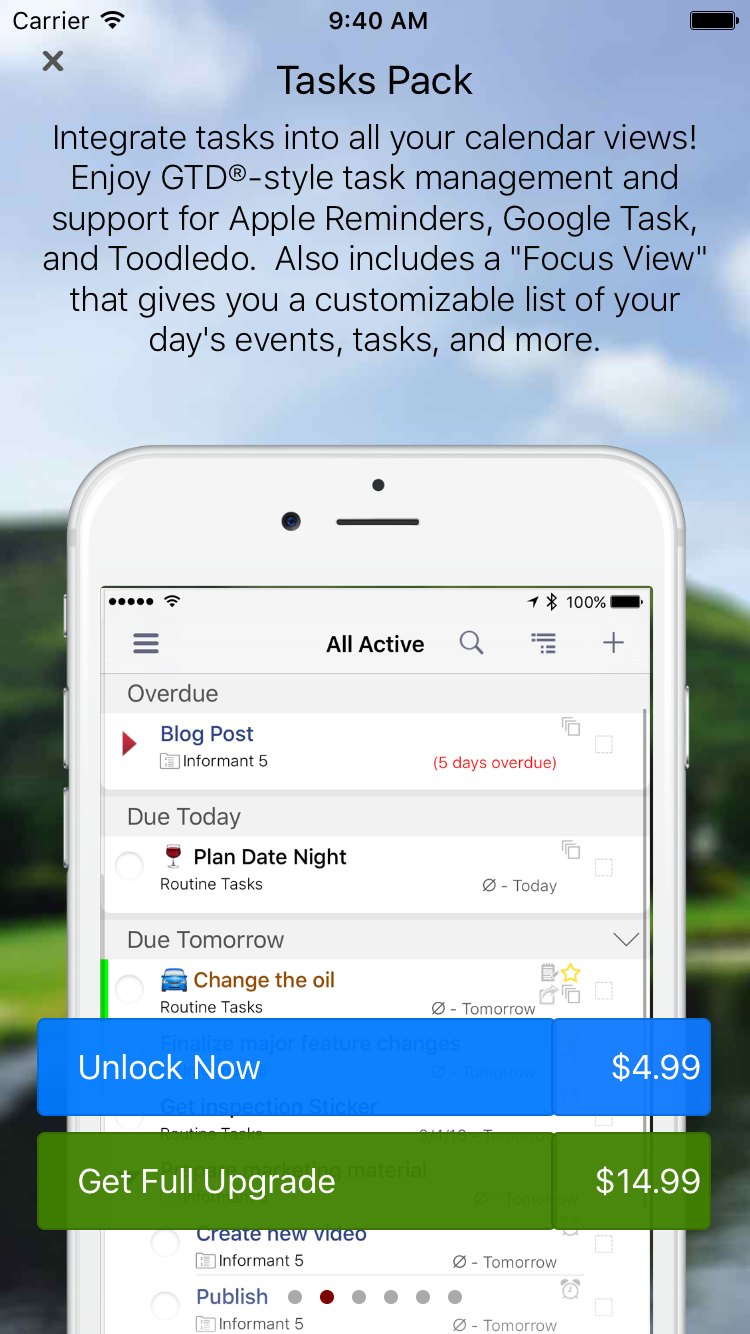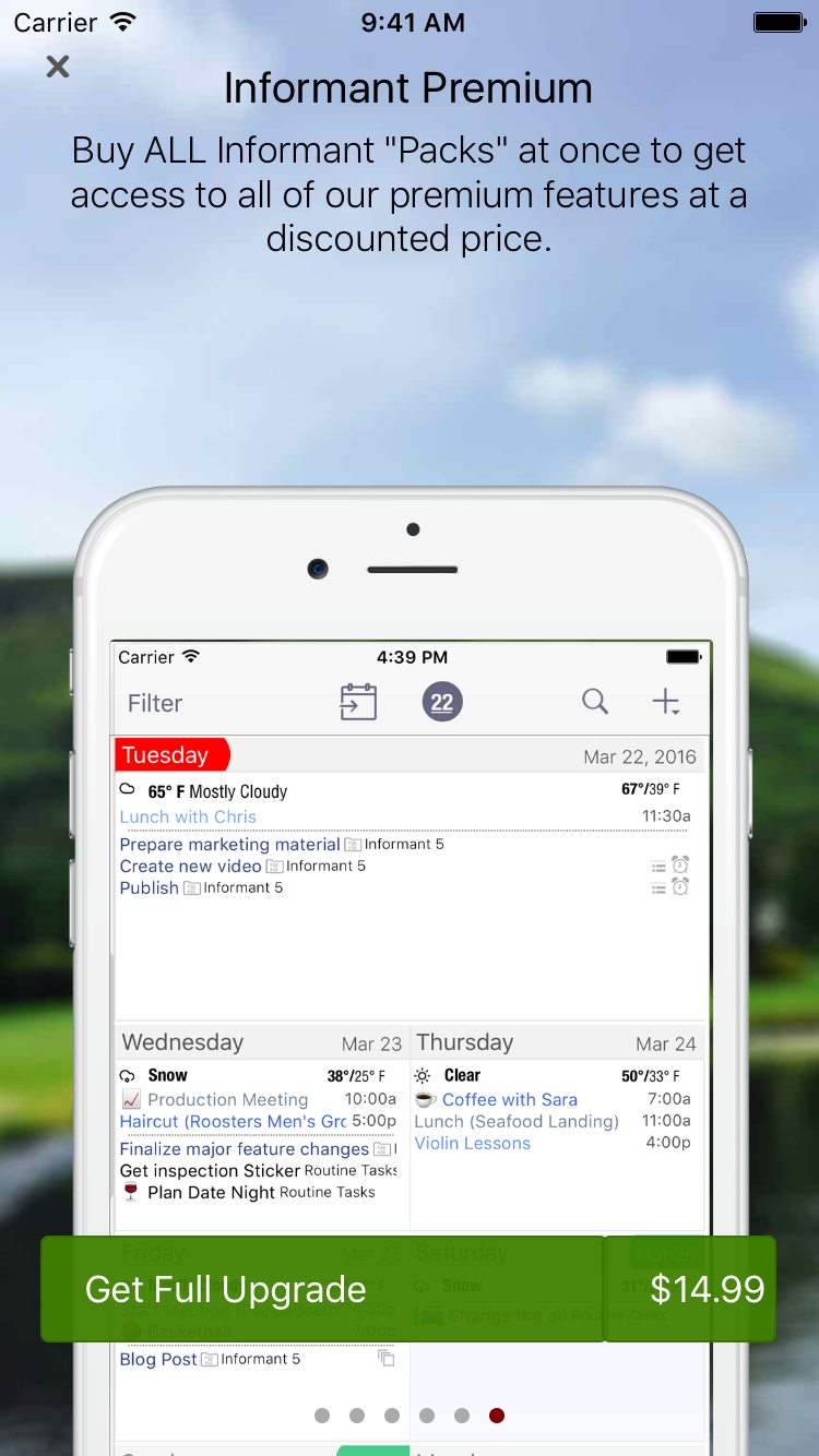 For new customers, with each part of Informant broken up in pieces, you can buy just what you need at a more affordable price. We are also changing what you get for free with Informant 4.9 if you don’t buy anything. First, you now essentially get a basic free calendar. If you would like to add Tasks, Notes, Contacts, Sync, Templates, Icons, Colors, or a handful of other options, you can now purchase many of those items á la carte. If you want everything that Informant has to offer, we still have the same Informant Premium option to unlock it all just like we’ve always had.