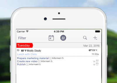 A few other miscellaneous changes include being able to complete tasks from the Today widget, improved Weather reporting, various improvements to sync, the swipe actions are now customizable, we now support multi-level sub-tasks, and we require iOS 8 as our minimum OS level.