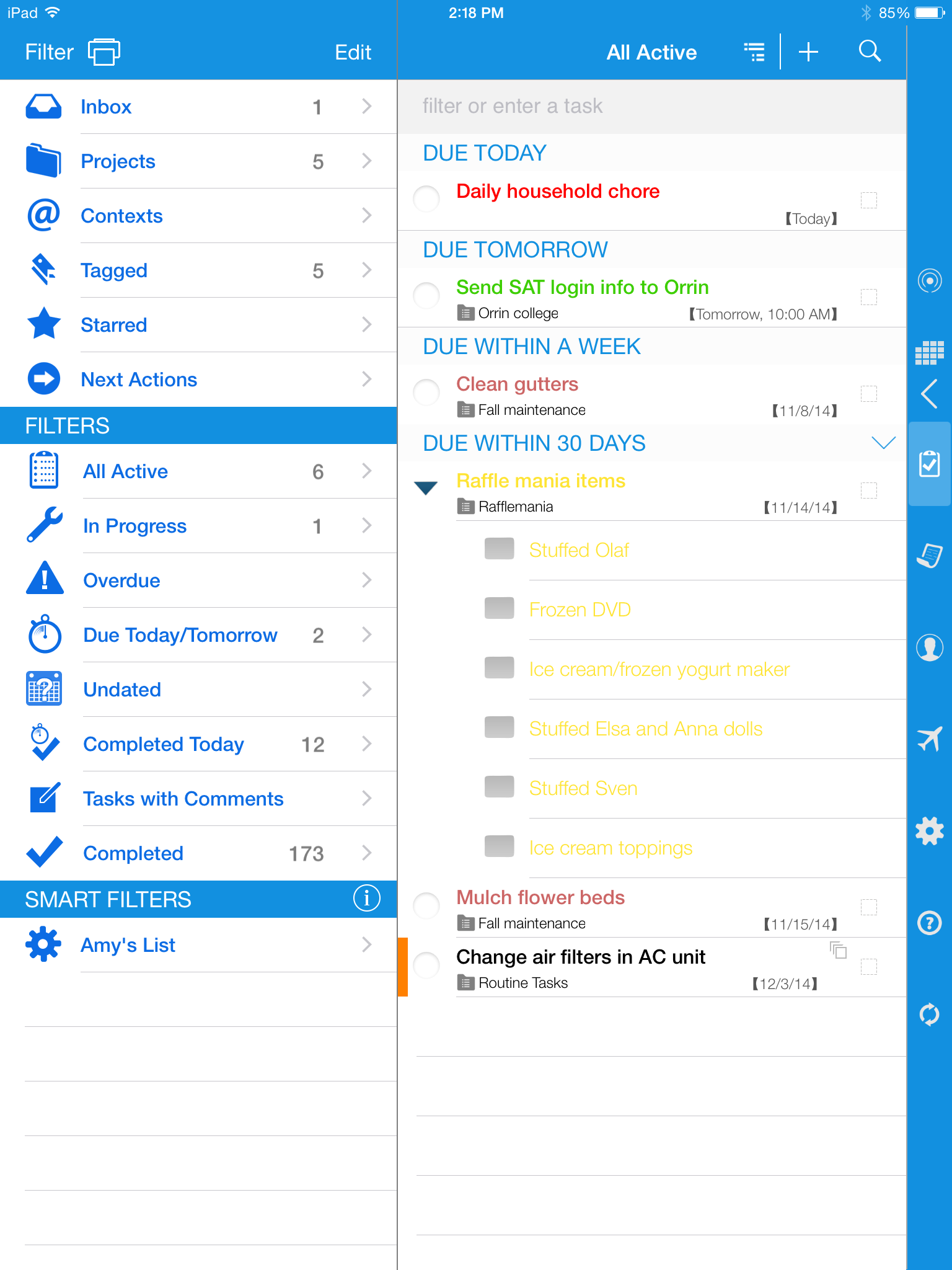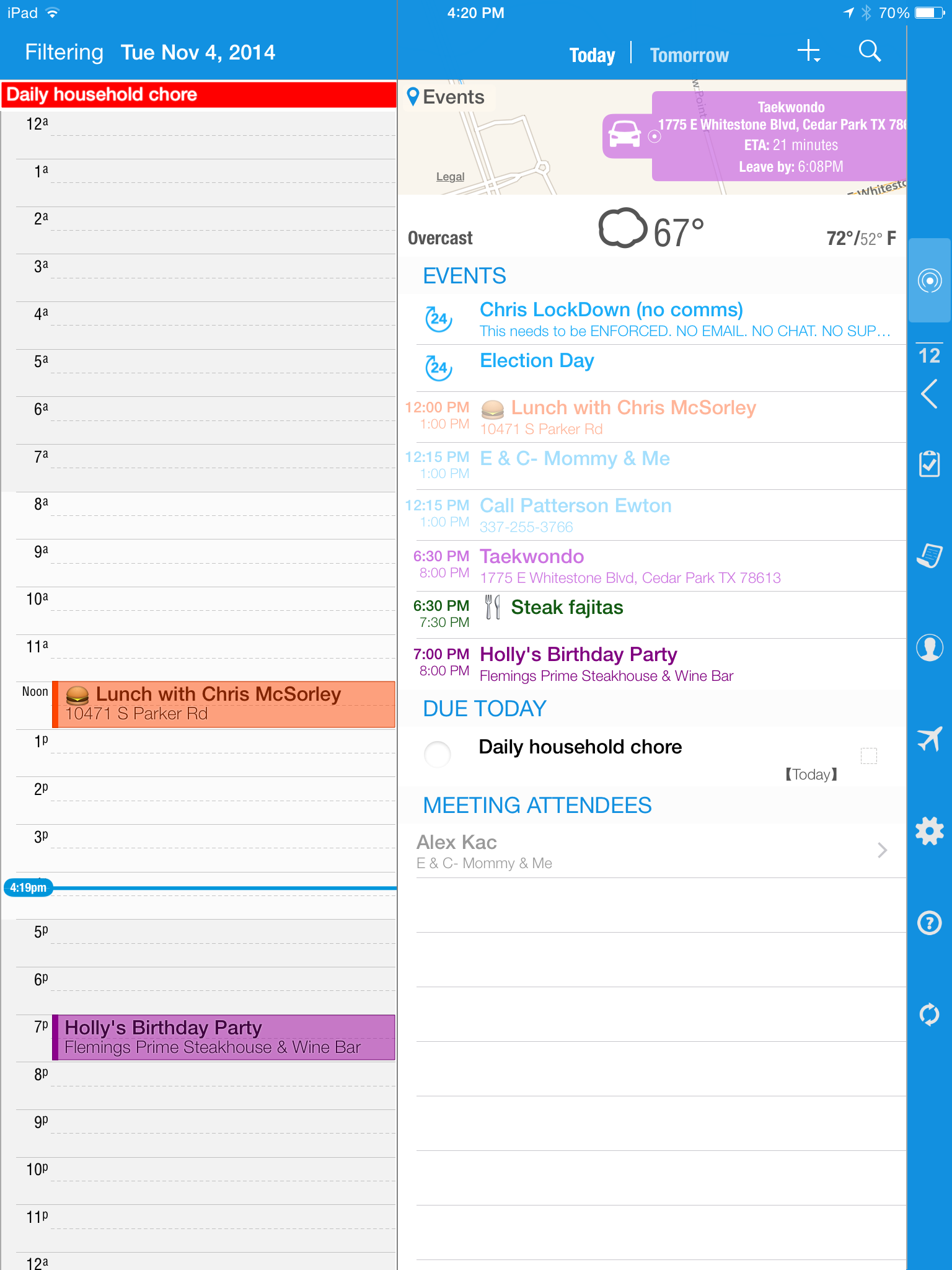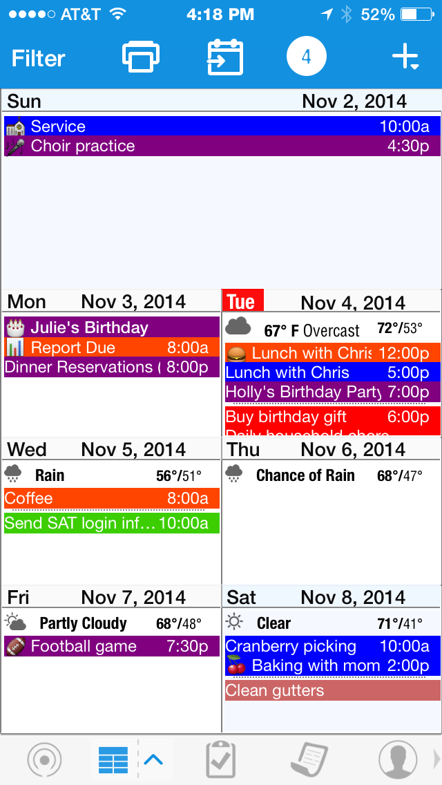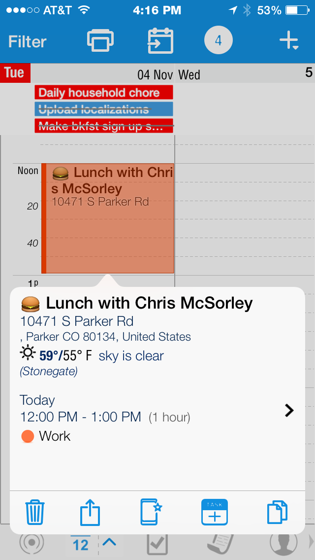 Type (or speak*) naturally! Enter phrases like “Take out garbage every Friday at 8am” or “Coffee with Mom Tuesday at 8am”. Use our Quick Entry to enter new events or tasks in any view.