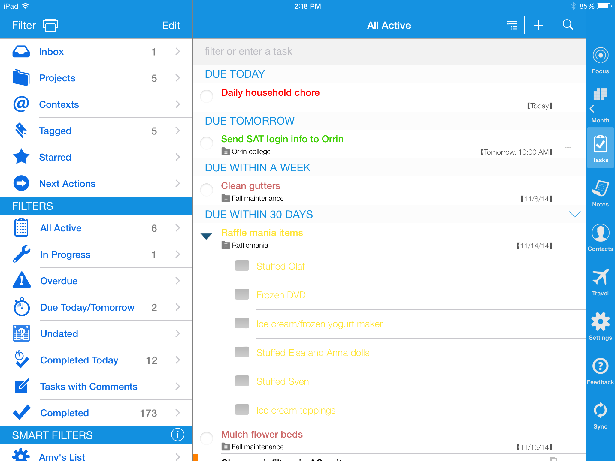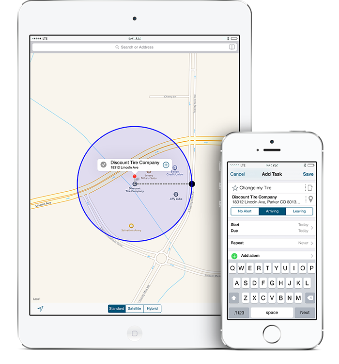 Version 4.0 now supports geofences with custom areas around your locations. Filter your calendar or task list by geofenced location. Geofencing works great for outdoor locations!