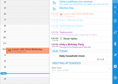 We’ve made it easier to create and edit events and tasks with a purely clean designed interface designed for simple power. Tap on an event to bring up its details – including the weather at its time and place. Tap on the “New” menu and bring up a list of templates to create events from quickly and easily. New Month and Day views with a cleaner, more vibrant look. Task and event data shown with a greater focus on your data – not the user interface chrome. Show your note/alarm/recurrence icons without looking cluttered.