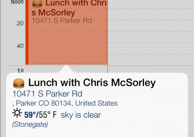 Just starting typing and let Pocket Informant bring up your contacts or templates. Tap on a contact and create meetings or phone calls. Automatically bring in phone numbers, addresses, email addresses, locations with just a couple taps!