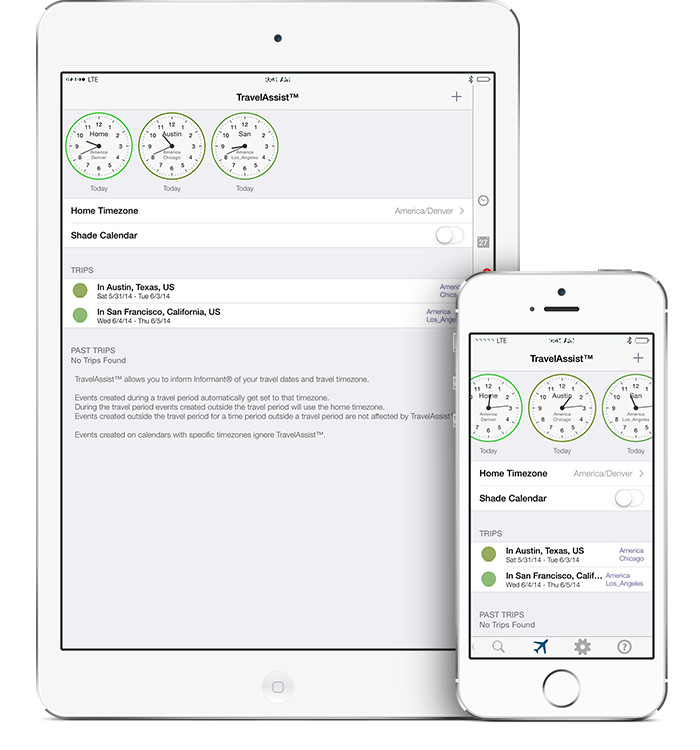 Help manage the timezone mess! Just create trips for whenever you travel and Pocket Informant will automatically setup your timezones for you – both inside and outside your trip dates! Dealing with timezones has never been easier!
