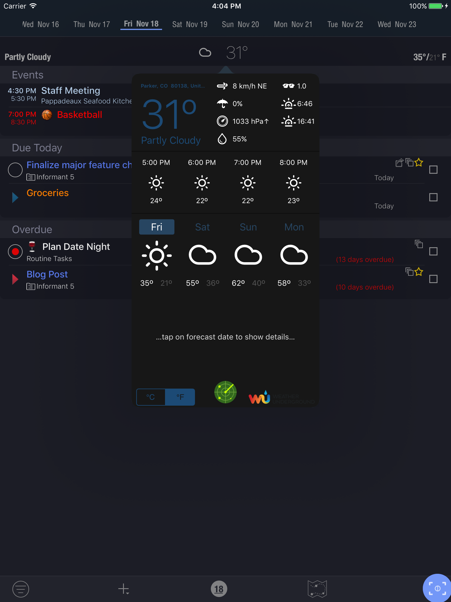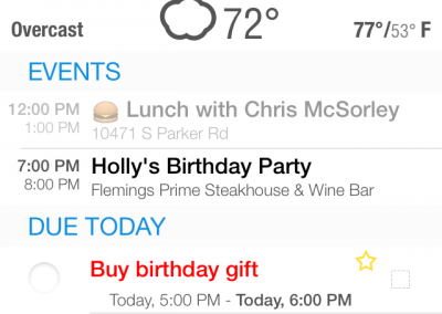 - If there is location info for an event, you also see weather for that location and date.