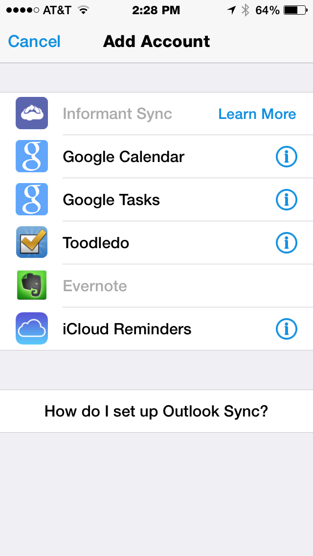 Sync your iPhone/iPad to your Android phone or tablet. Informant Sync is designed to be cross-platform, fast, and efficient on mobile networks. A complete sync solution for Pocket Informant owners, created to be 100%, feature-for-feature compatible with the mobile applications.