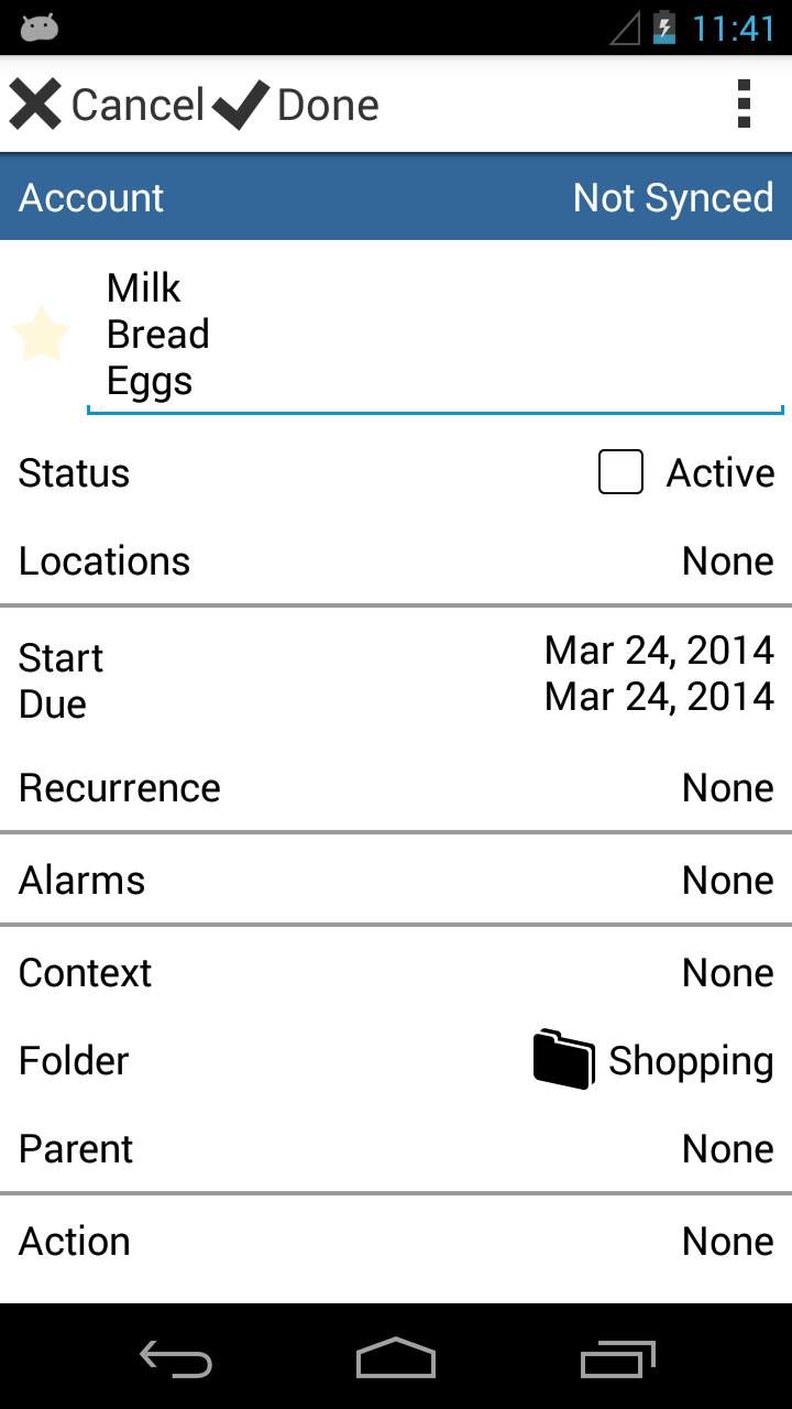 When you open new task dialog you can enter just one line for the task title. But, if you add more lines, each of them will be saved as a separate task. All the other properties will be the same for all these new tasks. This is an easy way in which you can add many tasks for the same day, folder, context, etc.